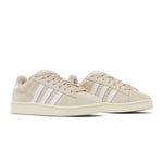 La adidas Campus 00s Wonder White pour femme est fabriquée en daim avec des accents en cuir lisse sur le talon et également sur les 3 bandes. La sneaker est dotée d'une semelle intérieure OrthoLite conçue pour offrir un amorti et un soutien supérieurs, vous permettant de porter ces baskets pendant de longues périodes sans ressentir de fatigue ou d'inconfort. La semelle extérieure est en caoutchouc et présente un motif de bande de roulement qui offre adhérence et traction sur une large gamme de surfaces. Le col et la languette sont doublés pour plus de confort.