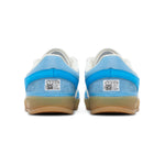 Cette paire présente une teinte bleu céleste sur sa tige, évoquant les paysages côtiers. Des détails immaculés sont ajoutés sur l’empeigne au niveau des œillets et des trois bandes emblématiques d’adidas. Cette édition spéciale inclut des caractéristiques distinctives des précédentes collaborations de Bad Bunny avec adidas, telles que la double languette et un empiècement sur le mudguard. Un branding "San Juan" est ajouté tandis que l’inscription "Benito" apparaît sur le côté latéral de la chaussure. Enfin, une semelle en gomme ajoute une touche classique à ce design moderne.