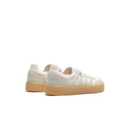 Bien que la couleur ivoire soit dominante, des détails rose fusion apportent une touche féminine et originale : œillets en forme de cœur, marquage Trèfle sur la languette et motif intérieur. Le talon bénéficie quant à lui d’un contrefort en nubuck de qualité supérieure, ajoutant une sensation de confort et une finition luxueuse.