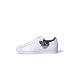 Chaussures emblématiques avec un couvre-orteil en forme de coquille. La tige est en cuir lisse, ce qui assure une longue durabilité du produit et l'apparence souhaitée. Les pièces sont complétées par trois rayures distinctives et d'autres éléments aux couleurs métalliques parfaitement assorties.