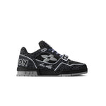 Cette sneaker LV Trainer incontournable est réinterprétée en denim embossé façon crocodile. Inspiré des chaussures de basket vintage, ce modèle présente une multitude d'emblèmes de la Maison, dont la signature Louis Vuitton style manuscrit ainsi que des fleurs de Monogram sur la tige et la semelle extérieure. Il se ferme à l'aide de lacets dégradés et d'une bride velcro ajustable.