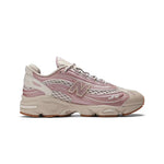 Cet élégant modèle New Balance 1000 x Joe Freshgoods allie à la perfection style rétro et détails futuristes. Des empiècements en cuir fluide, dans une subtile teinte pastel rose vison, se fondent sur la tige respirante en mesh ajouré. Des lignes blanches épurées soulignent les flancs, tandis que des empiècements beiges protègent la pointe et le talon. Conçue à l'origine comme une chaussure de course pratique, cette sneaker collaborative conserve de nombreuses caractéristiques de confort du modèle classique, notamment la mousse polyuréthane double densité et la technologie ABZORB intégrée à la semelle intermédiaire pour une protection optimale contre les chocs. Sous le pied, la semelle extérieure couleur gomme est ornée de motifs adhérents aux formes dynamiques variées, avec un texte original sous le talon et l'avant-pied. Des détails sophistiqués se retrouvent sur toute la sneaker, du lettrage JFG à l'avant-pied au double marquage sur les semelles intérieures rose tendre, en passant par la broderie 1000 inclinée sur l'arrière du pied, en harmonie avec l'inclinaison décalée des empiècements. Des logos N roses sculptés ornent les flancs pour maximiser l'attrait profond de cette collaboration nostalgique.