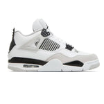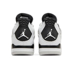 Comme son nom l'indique, cette nouvelle version reprend la présentation des 4 classiques « Bleu Militaire », mais avec une touche de gris. La plupart des chaussures sont blanches, notamment les empiècements latéraux en cuir, le filet au milieu du pied et au niveau du col, ainsi que les lacets. Les garde-boue et les cages contrastent avec un gris clair. Des touches de noir intense ornent ensuite les œillets, le logo Jumpman sur les languettes, les contreforts, les sous-couches des filets et les semelles intermédiaires, complétant ainsi sa palette polyvalente.