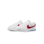Ajoutez une touche classique à votre garde-robe avec ces baskets Nike Cortez pour homme. Dans le coloris blanc d'origine avec des touches de rouge et de bleu, ces chaussures d'inspiration rétro sont dotées d'une tige en cuir synthétique lisse pour une durabilité accrue. Elles sont dotées de lacets élastiques à fermeture auto-agrippante pour un maintien optimal et reposent sur une semelle intermédiaire en mousse moelleuse avec l'emblématique insert compensé pour un confort optimal tout au long de la journée. Elles sont dotées d'une semelle extérieure en caoutchouc crantée ornée du motif à chevrons emblématique et arborent le logo Nike sur toute la surface.