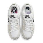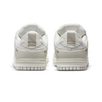 La paire, dont la release est prévue le 25 mars 2022, arbore un design subtilement déstructuré vêtu ici d’une base en toile blanche. Celui-ci est véritablement sublimé par des renforts en daim gris clair et d’infimes touches de noir. Infimes mais suffisamment habiles pour mettre en exergue le logo de Nike sur chaque panneau extérieur, conférent à cette occasion une dimension asymétrique au coloris. Un second Swoosh, plus imposant, se dévoile en filigrane tandis qu’un renfort de talon débordant sur la midsole immaculée s’affiche dans un rappel de gris commun à la semelle extérieure. Notons pour conclure que la Dunk Low Disrupt 2 ‘’Pale Ivory Black’’ est pourvue d’une structure durable