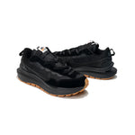 Cette Vaporwaffle se dresse dans un coloris sombre sur toute sa silhouette mais n’en reste pas moins élégante. Ainsi, celle-ci se compose d’une base en nylon noir avec des empiècements en suède noir au niveau du upper et des oeillets apportant à cette déclinaison une touche chic et rétro. On retrouve également les éléments dédoublés qui ont fait le succès de Sacai tels que le swoosh latéral et la tongue ornée d’un branding personnalisé. Elle conserve sa gumsole avant-gardiste et audacieuse et se pare d’une outsole marron, seul contraste de la paire qui apporte une superbe finition.
