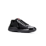 Ces sneakers en cuir verni avec des empiècements en tissu Bike s’inspirent d’une esthétique emblématique. Elles sont ornées du logo Prada Linea Rossa unique sur la languette et la semelle.