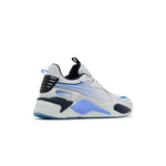La PlayStation x PUMA RS-X « Glacial Grey » utilise des superpositions synthétiques grises pour animer la tige ripstop. Les panneaux latéraux bleus dégradés enrichissent le look, tandis que les deux logos de marque se frayent un chemin jusqu'à la langue. Les icônes du contrôleur PlayStation embellissent le côté de l'orteil, apparaissant à nouveau sous la semelle extérieure en caoutchouc transparent de couleur bleue.