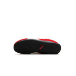 La réédition de la Puma Speedcat OG se fait dans deux de ses coloris originaux : Red et Black. Nous vous présentons ici ces versions revisitées que vous pourrez bientôt retrouver chez nous. La Puma Speedcat OG Red reprend la silhouette basse et racée du modèle iconique de 1999. Son avant arrondi, inspiré des chaussures de pilote F1, est ici paré de cuir suédé brossé rouge. Un félin blanc est brodé sur le côté extérieur, ajoutant une touche de contraste. La toebox se marie harmonieusement avec le reste de l’empeigne en matière et en couleur. La languette, équipée de lacets plats rouges, est ornée d’un logo Puma doré, rappelant le logo présent sur les panneaux latéraux, sous lequel est cousu un Formstrip blanc. La paire repose sur une semelle extérieure noire, assurant un look élégant et sportif.